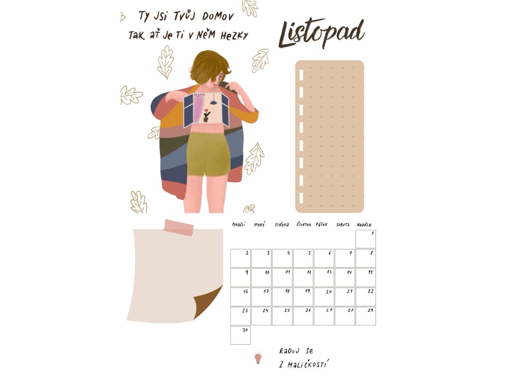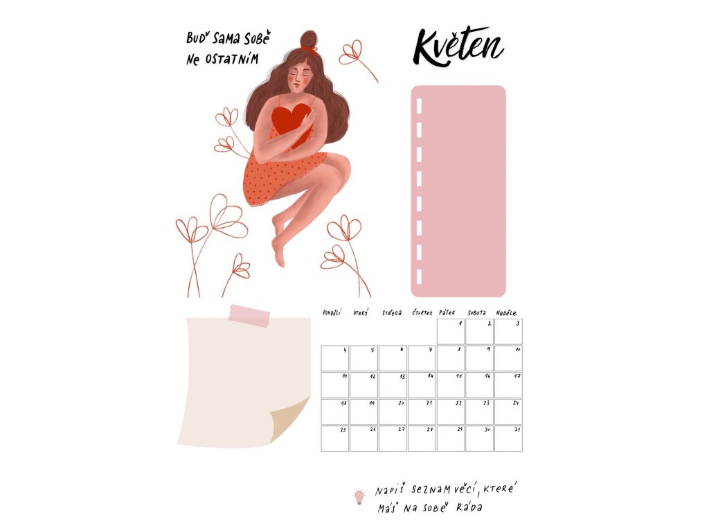 Na stránce je místo na to-do list, případné poznámky a také dostaneš tip na péči o sebe. Čas věnovat pozornost sobě je právě TEĎ ♥